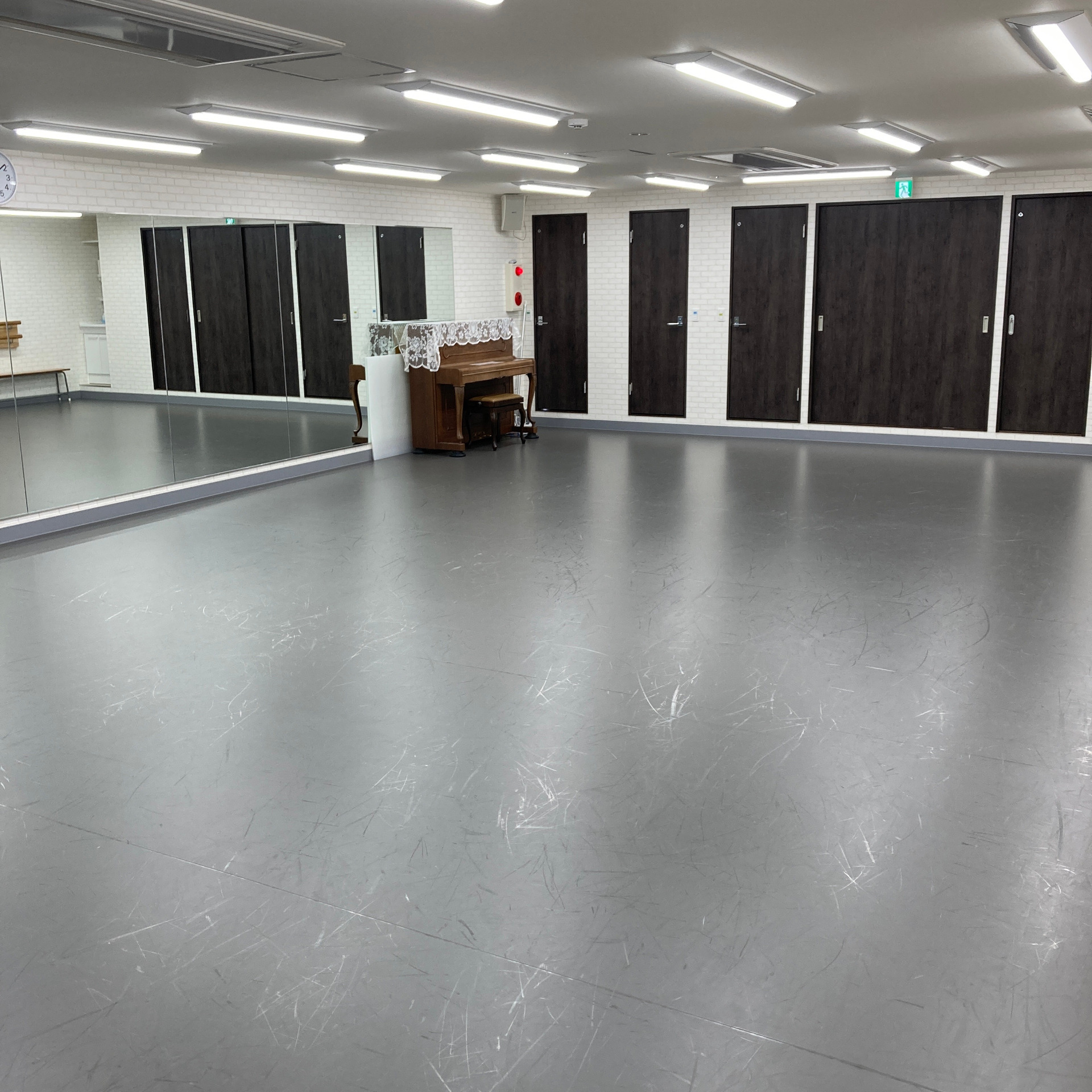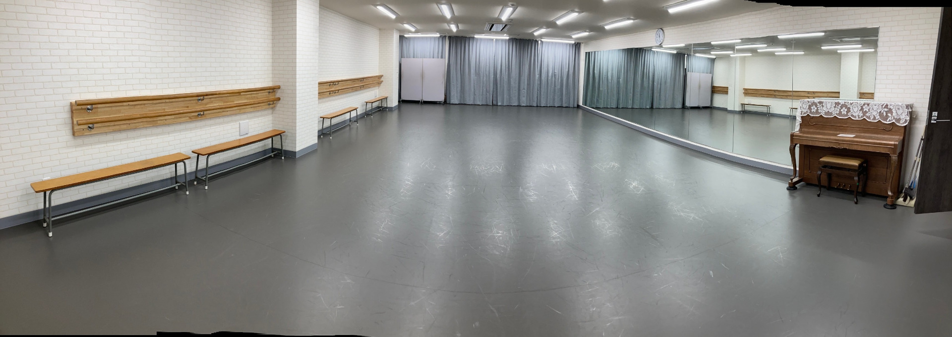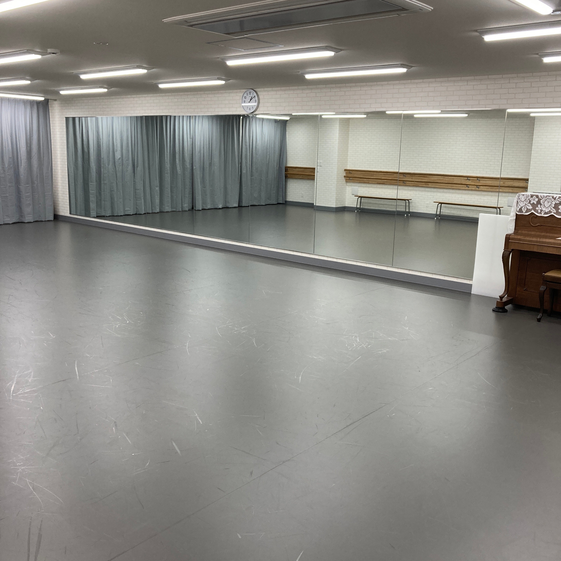 1階のスタジオはピアノ完備で広さ約90㎡ 。バレエ、体操、ダンス、ヨガ等にご利用いただけます。